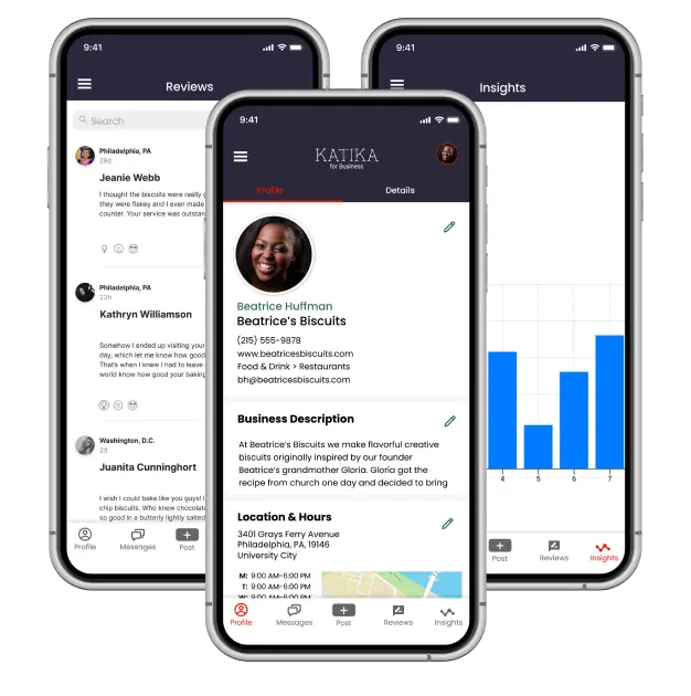Share updates, crowd source feedback, and draw in new customers with a post in the most visible place on Katika, “The Feed” wall. The Chamber business posts can help you build and nurture relationships with local customers in your specific neighborhood who are most likely to support you.
